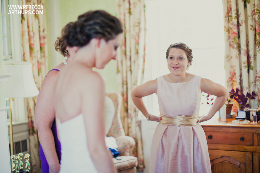 Becca’s dad was passing by the window and saw his daughter sitting there getting her makeup done, about to get married . . . it was such a sweet moment between father and daughter.